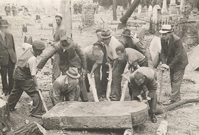 Fotografie din timpul dezafectării cimitirului evreiesc din strada Sevastopol. Foto CSIER
